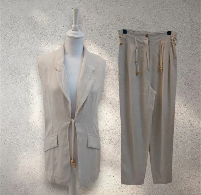 Ensemble deux pièces en lin pantalon et veste sans manche taille S - photo numéro 1