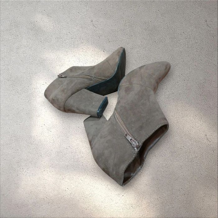 Bottines à talons en daim beige fermeture zippée pointure 39 - photo numéro 3