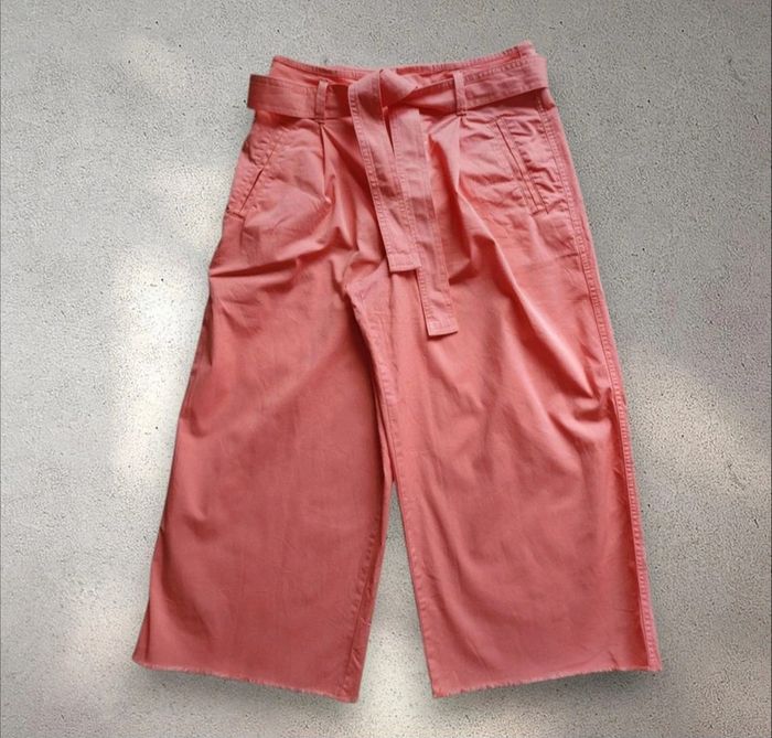 Pantalon court jambes larges corail avec ceinture à nouer GAP taille 36 - photo numéro 1