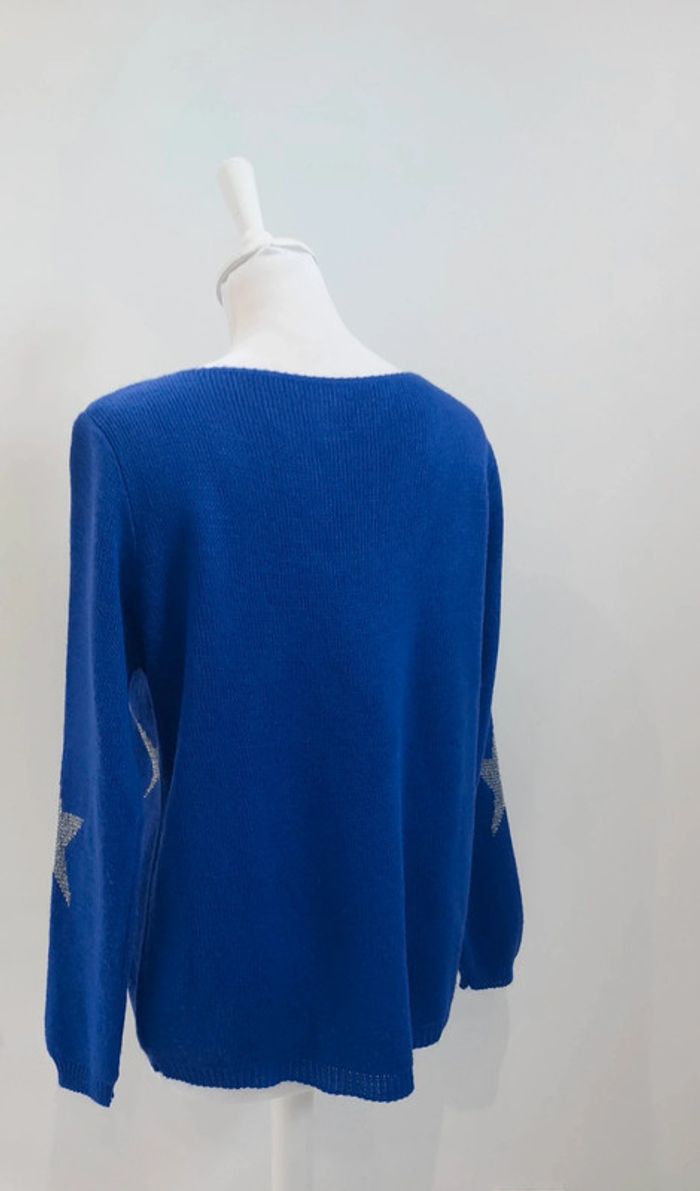 Pull d'hiver bleu motifs étoiles argentées taille S - photo numéro 3