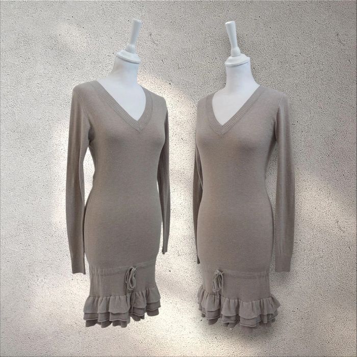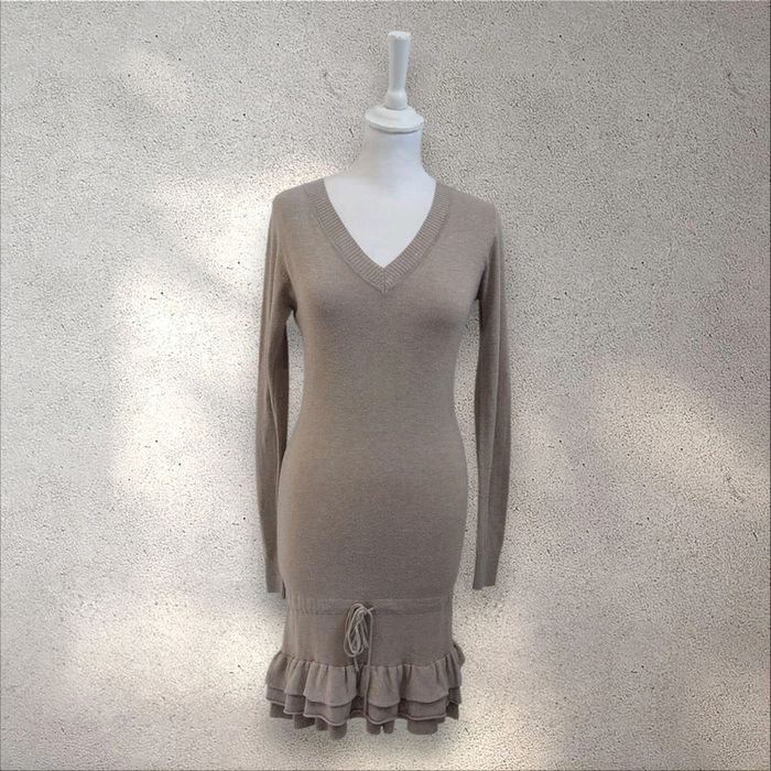 Robe pull beige décolleté en v froufrous en bas taille S - photo numéro 1
