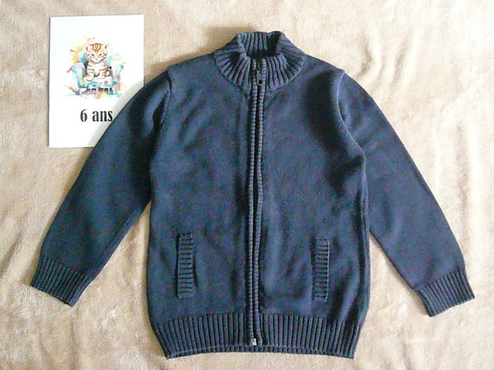 Gilet bleu marine - taille 6 ans. Très bon état. N’hésitez pas à regarder mes autres annonces pour réduire les frais de port.