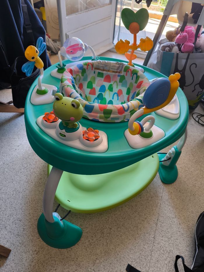 Siège sauteur 2 en 1 multi-activités et table de jeux. jeu évolutif Des heures de jeux rebondissant et de rigolades pour les petits Des années de jeux: le siège se transforme en table pour les grands Grenouille électronique émettant des coassements. musique et lumières Envoyer dans son carton d'origine