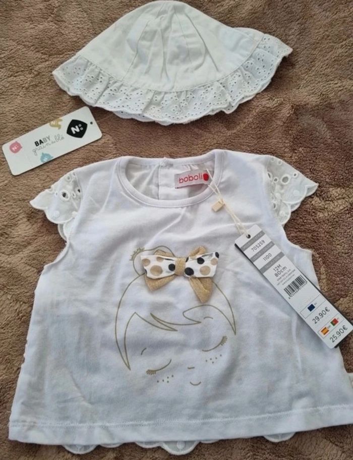 Ensemble tee-shirt et chapeau 12 mois neuf avec étiquette - photo numéro 1