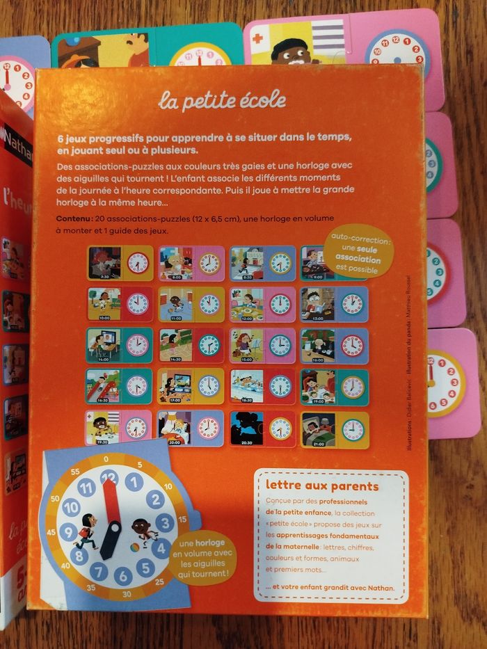 Jeux éducatifs pour apprendre l'heure État : excellent état proche du neuf Complet : Oui Âge : 5/7 ans . 😉 J'envoie le jour J 😜 N'hésitez pas à jeter un coup d'œil dans mon dressing, je fais le tri dans mes placards. Si vous achetez 2 articles=-15% 3 articles =20% et 5 articles= 25%