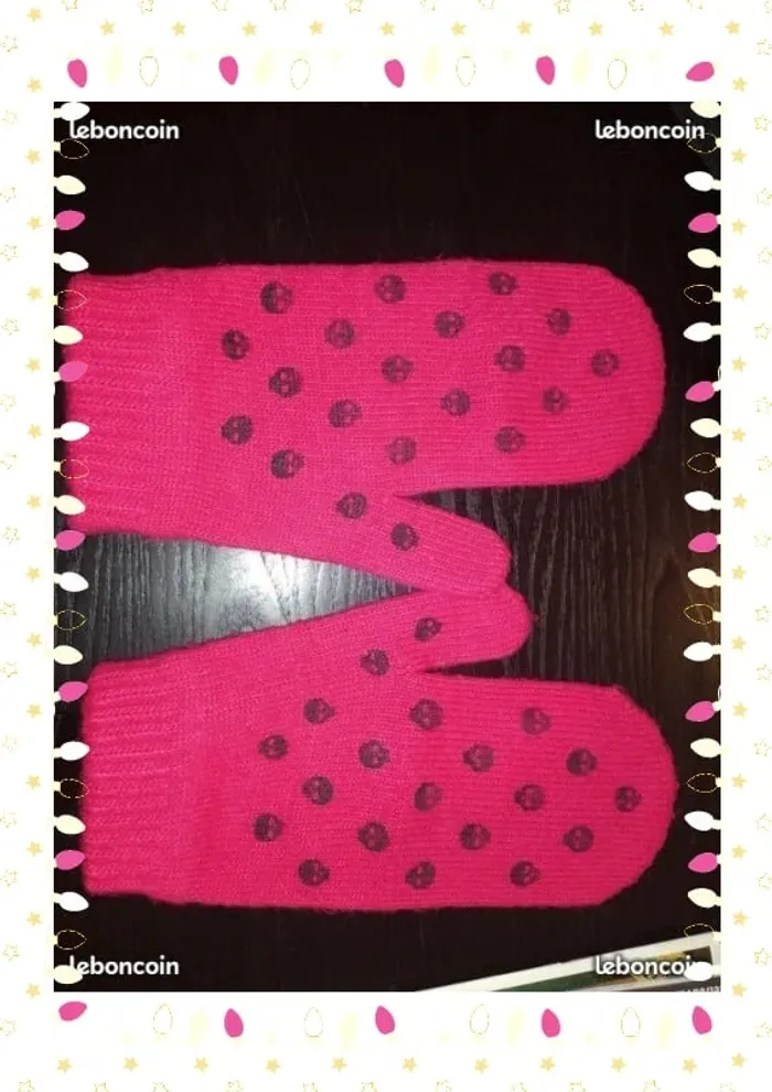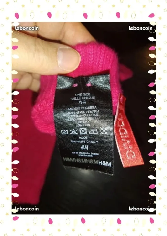 Moufle H&M rose motif tête de mort noire une toute petite tache voir photo #sylvief95_femmetailleunique #sylvief95_accessoires