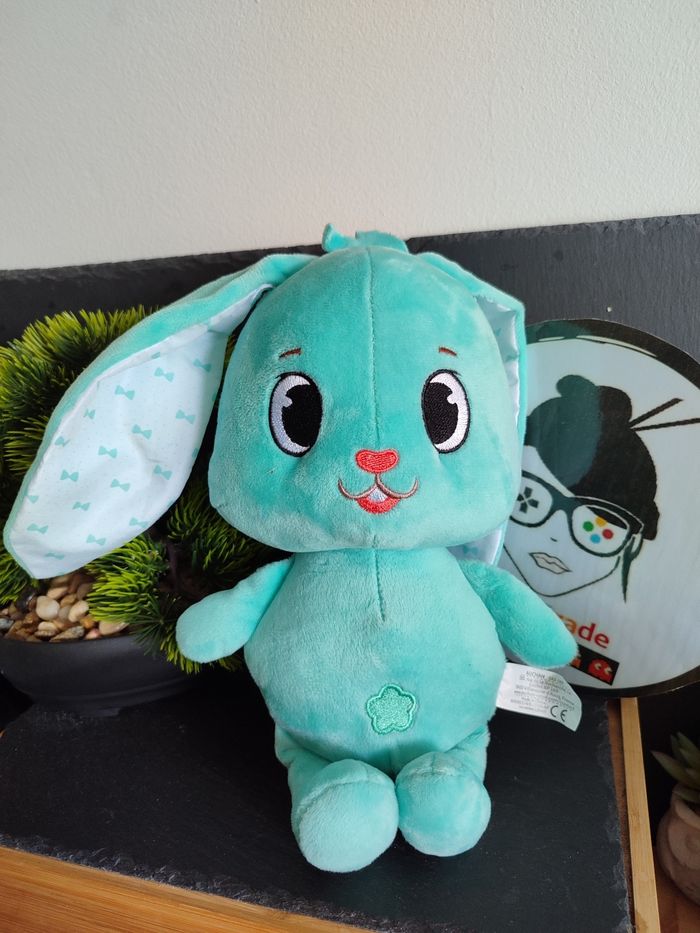 doudou auchan one fun two Lapin bleu vert blanc peluche noeud fleur PE0247 - photo numéro 1