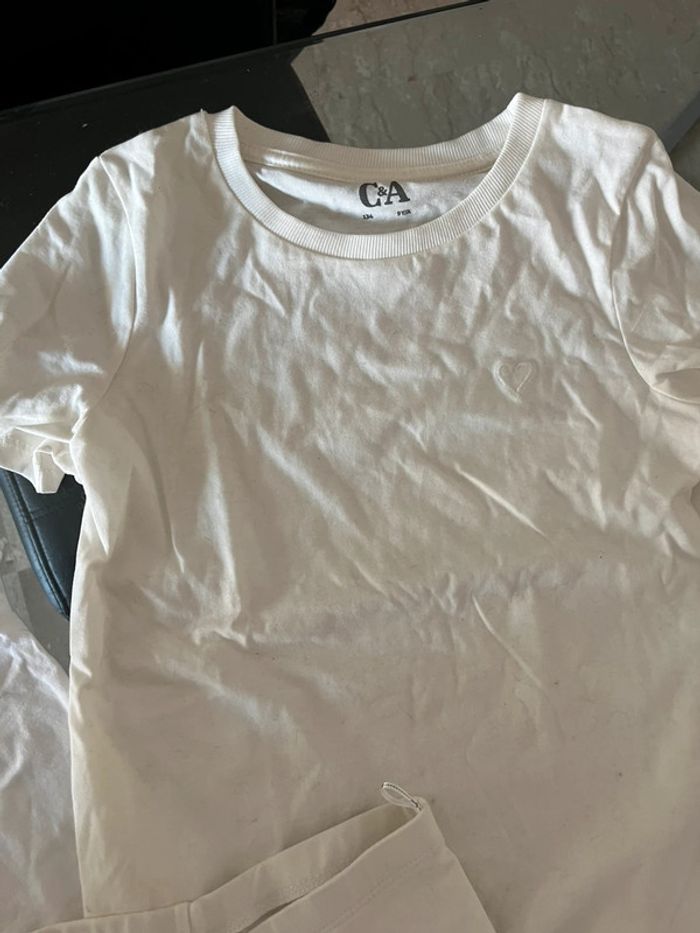 Ensemble leggings (court) + 2 tee shirts manches courtes tailles 9 ans Bon état 🤑 Promotion activé N hésitez pas à faire des lots jusqu a 25% des 5 articles achetés