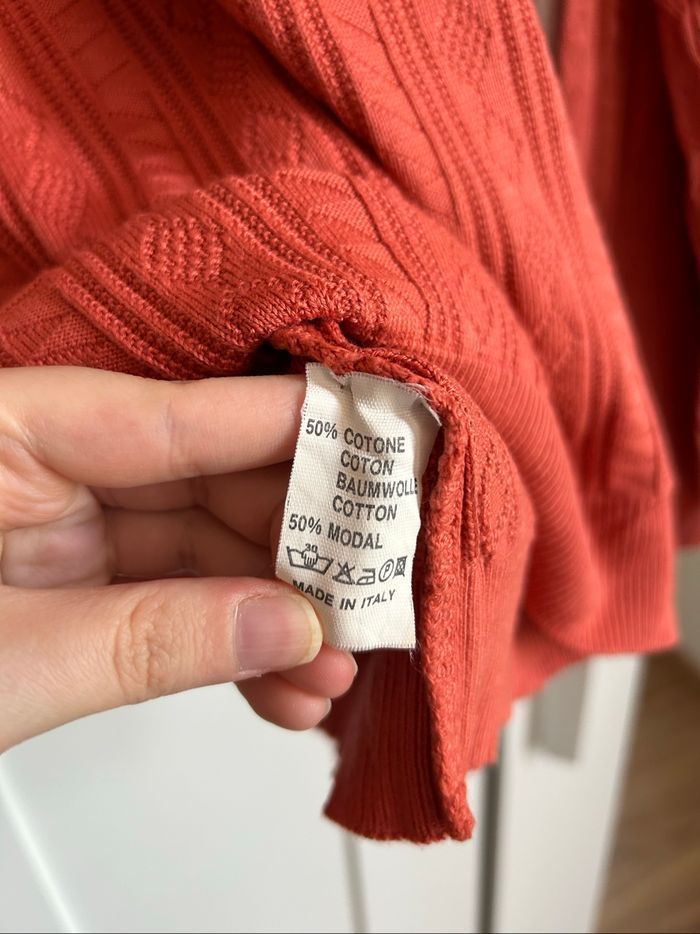 Pull corail uni tressé Col V Homme Barbieri Taille L - photo numéro 5