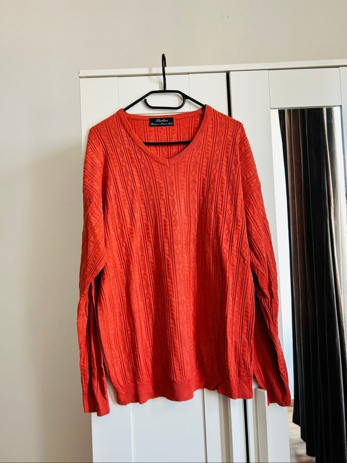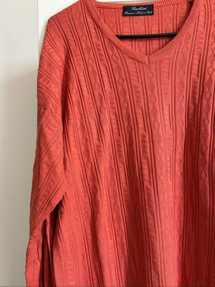 Pull corail uni tressé Col V Homme Barbieri Taille L - photo numéro 1