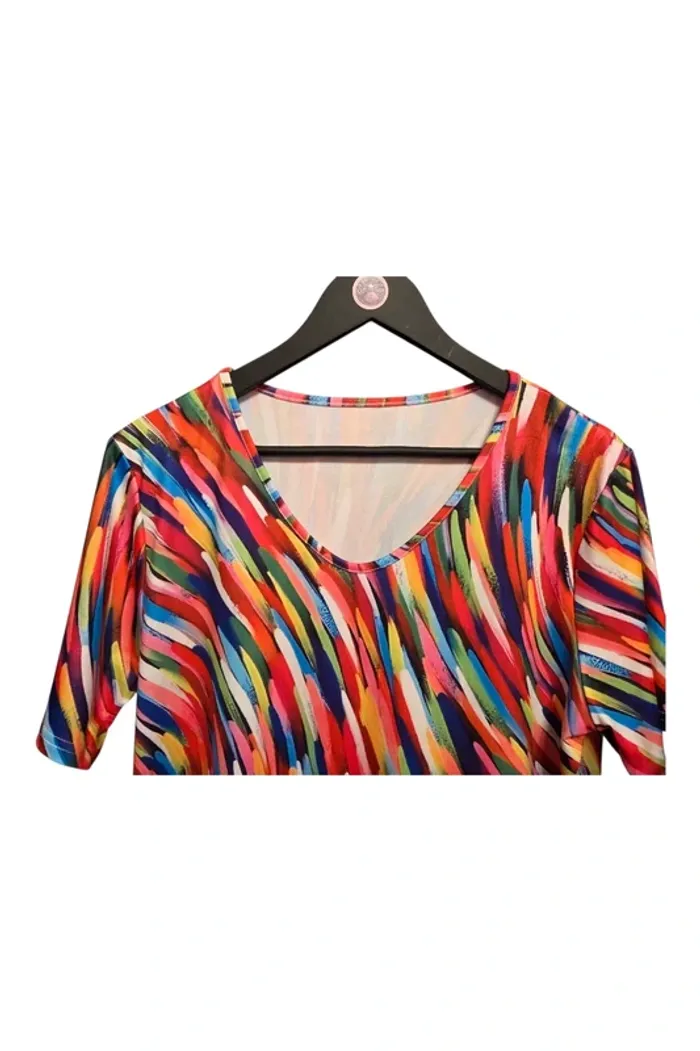 📸 Photo principale générée par IA pour mieux visualiser le rendu porté. ⚠️ Le modèle réel peut légèrement différer. Merci de bien consulter les photos suivantes pour voir l’article réel. Vend Tee-shirt extensible, très bon état. Longueur milieu dos 69cm Largeur d'aisselle à aisselle 59cm PAS D'ENVOI VINTED GO! #plussize #grandetaille #teeshirtfemme44 #blousefemme44 #femme44 #laboutiquedekatmin44