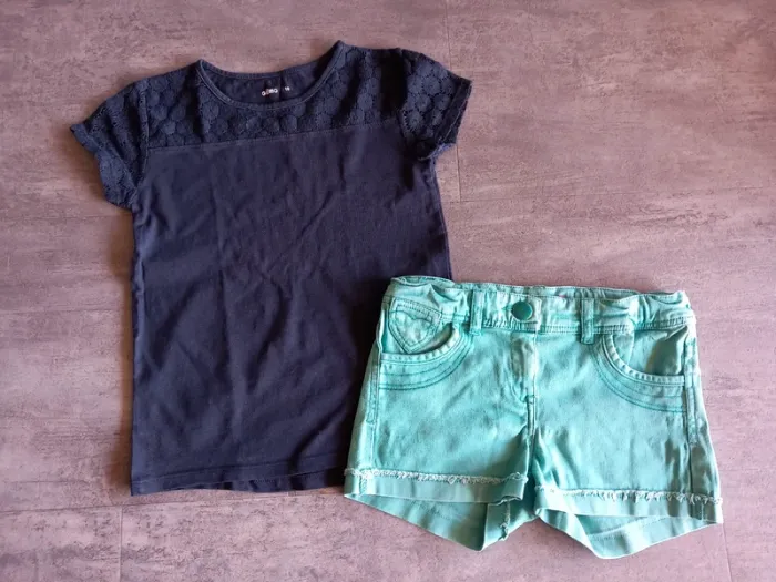 Tee-shirt + short fille Gemo 10 ans. - photo numéro 1