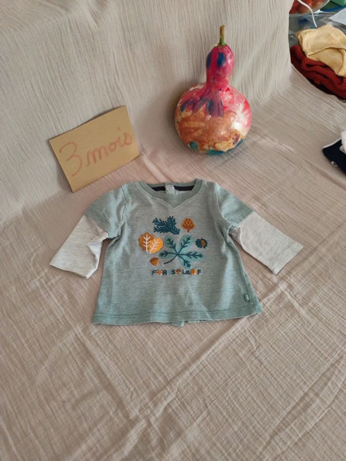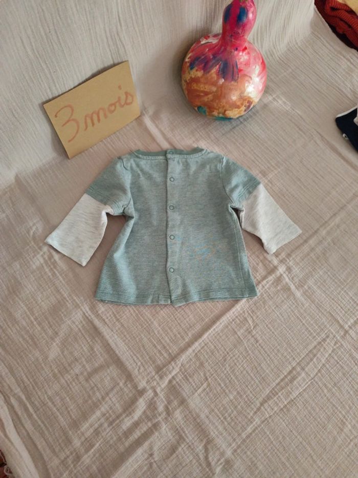 Tee-shirt manches longues vert pression dans le dos de chez Okaïdi