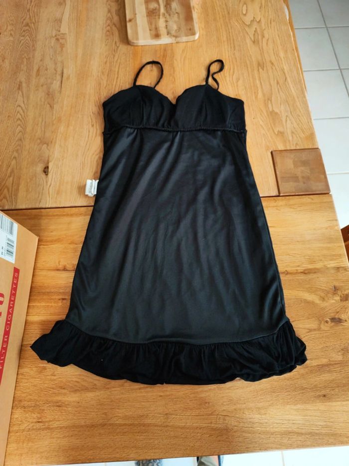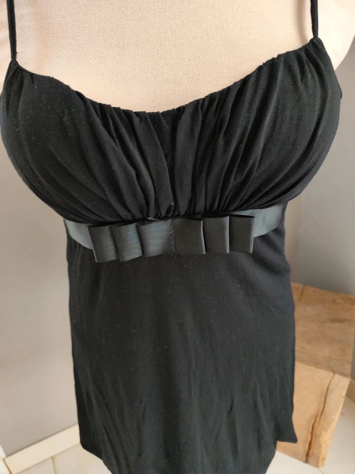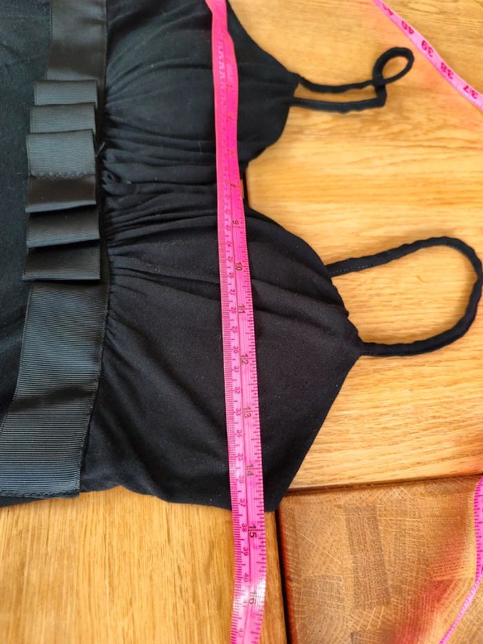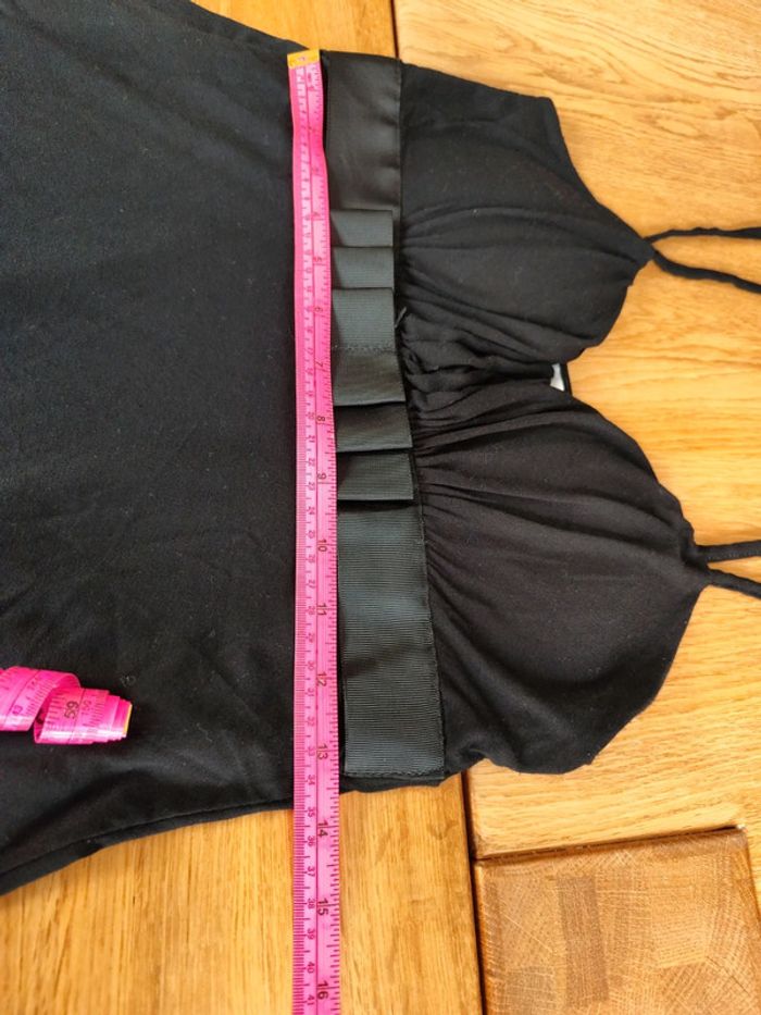 Petite robe courte noir entièrement doublée, noeud satin. 96% viscose 4% elasthane doublure 100% polyester #olinafemme36s