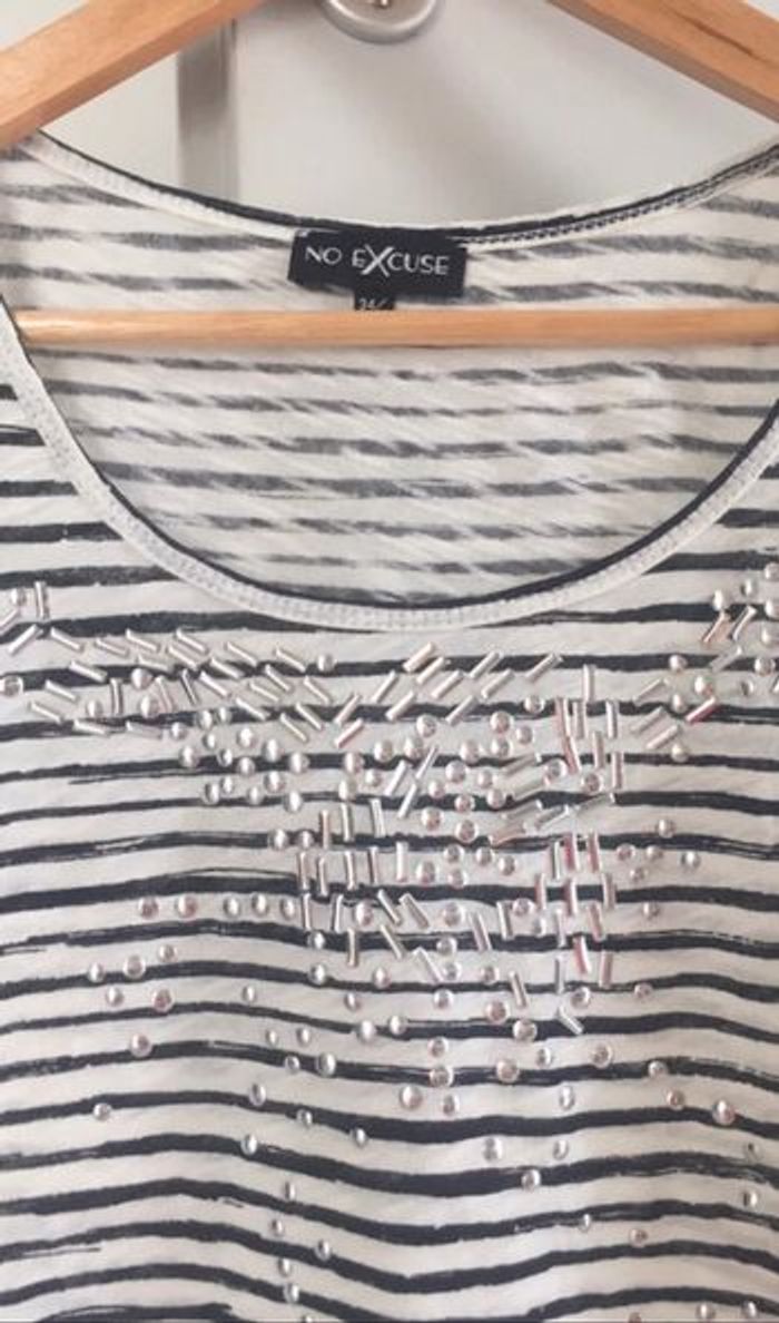 Achat aujourd’hui ? 👉🏻 Départ du 📦 demain ! Tshirt à rayures noir et blanc avec strass no excuse 34-36 Mot clé: tenue mercredi Addams noir et blanc goth gothique emo Tee shirt vêtement fille femme marinière rayure rayé Retrouvez tous les vêtements pour femmes que je vends : #vetfemmg