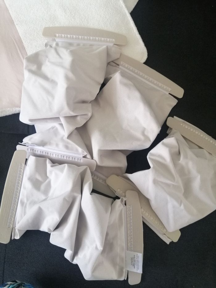 Lot de couches lavables t mac de la marque hamac Acheté neuve sauf la culotte moutarde qui présente quelques bouloches. La jaune a une légère tache de décoloration et la bleu a était utilisée 2 fois 3 inserts nuit en très bon état taille 2 4 Nacelles très bon état 2 booster neuf, même pas lavé Valeur à l achat plus de 160€ Je laisse le tout pour 100€ Les 3 culotte sont en taille M (6/12kg)