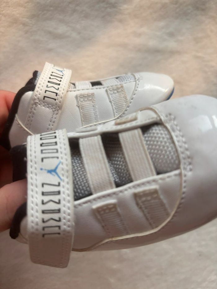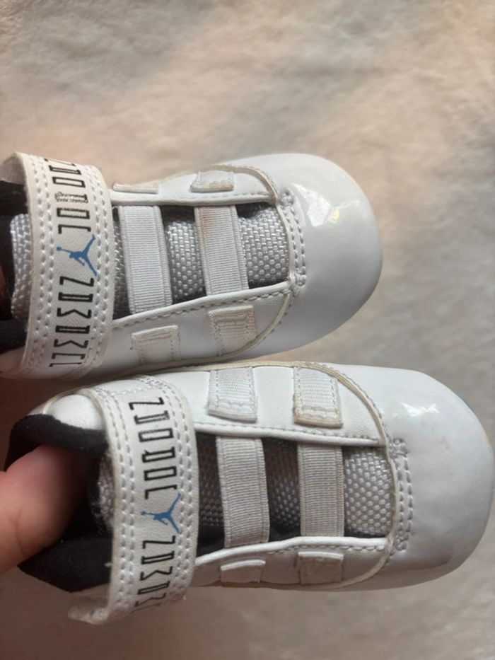 Basket / Sneakers Jordan 11 rétro blanche Bon état tache ( voir photo sur le tissue ) Mixe / fille / garçon Taille : 17 #chaussurekellyz33