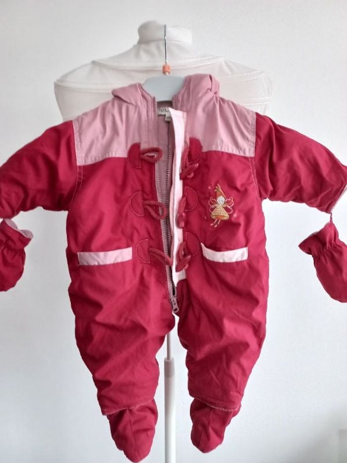 combinaison chaude avec fermeture éclair et bouton devant gant intégré capuche et protège pied amovible par bouton pression