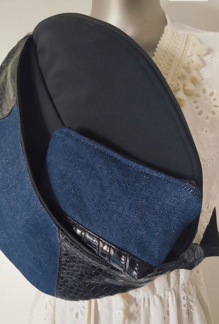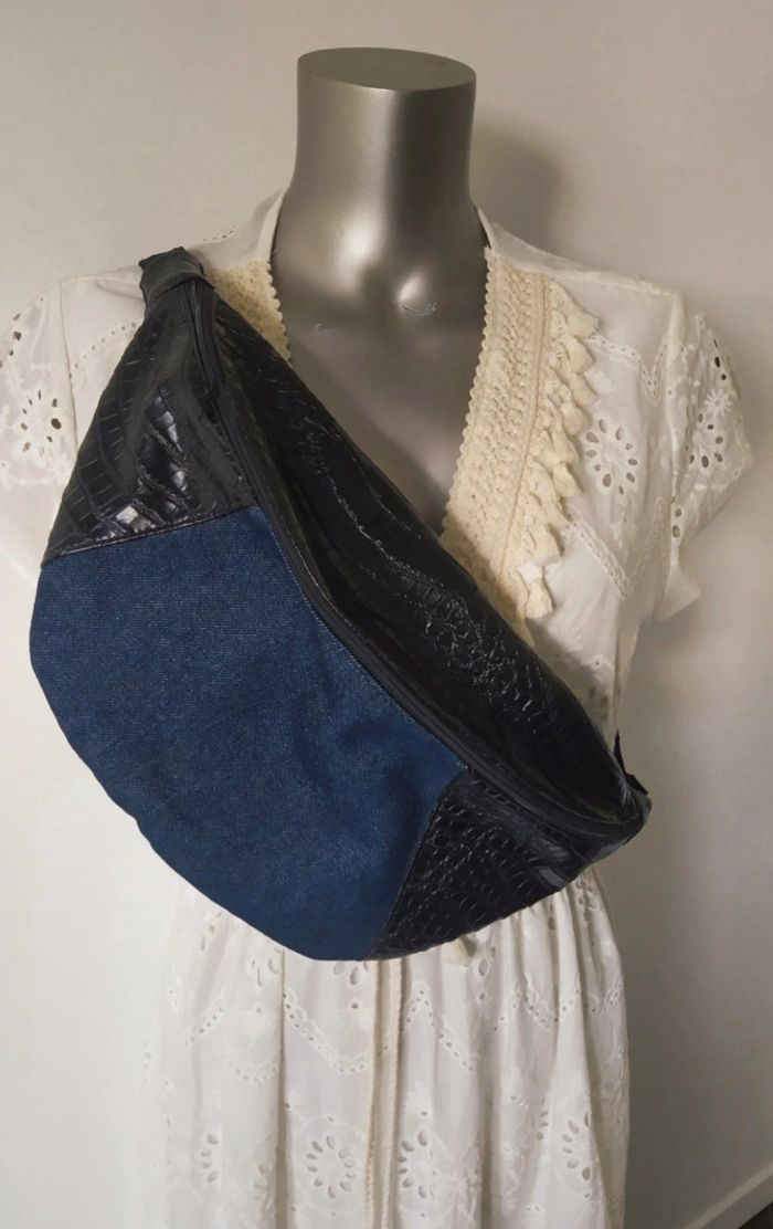 Sac banane xxl avec une petite pochette Neuf Jeans et simili cuir style croco vernis