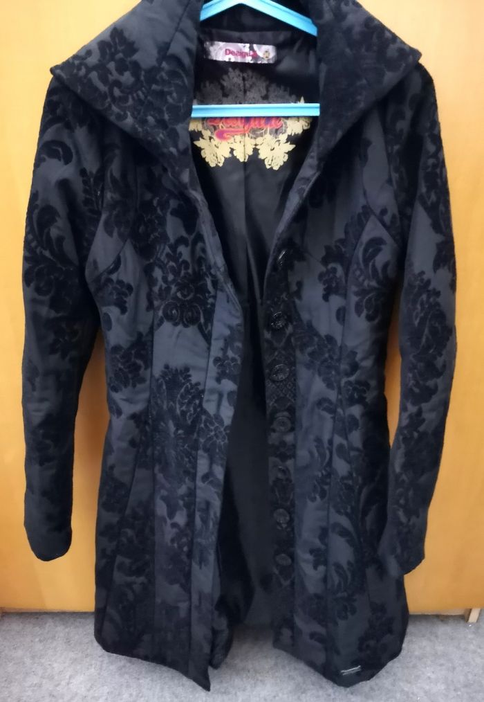 Manteau "Desigual", en tissu noir à fleurs en velours, doublée, taille S (36), tbé, portée très peu de fois, donc quasi neuf, prix définitif.