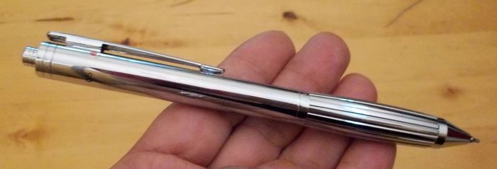 Stylo "Parker", en acier argenté à recharges multicolor, neuf.