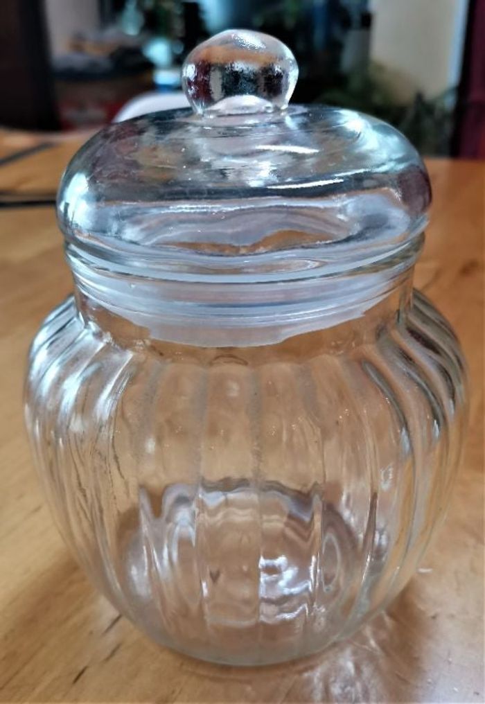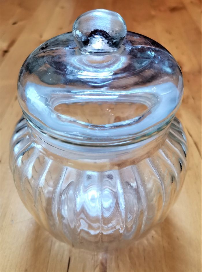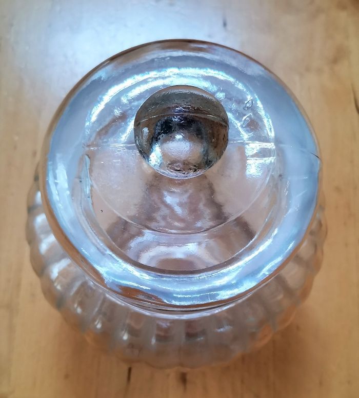 Bonbonière "Cucina", en verre transparent travaille, neuve.