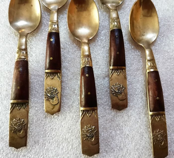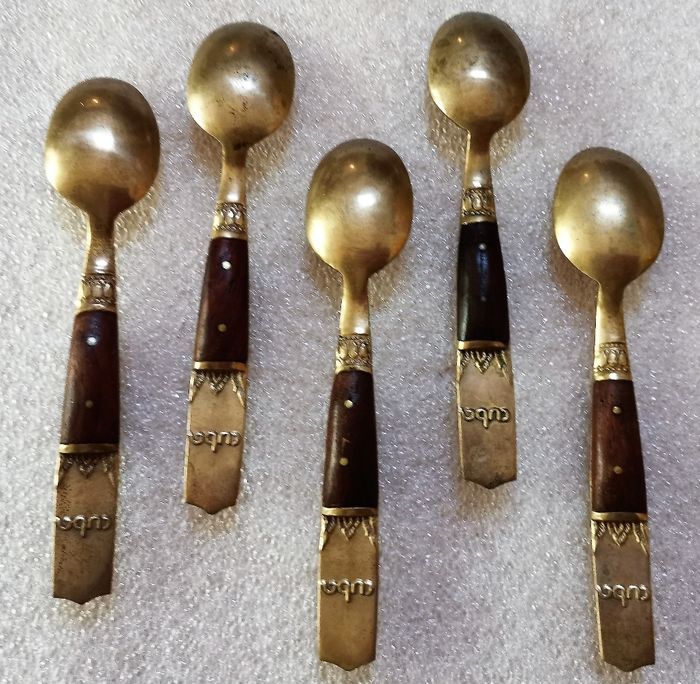 Cuillères "Cuba" cuilleres à desert en argent et bois, 5 piéces, tbé.