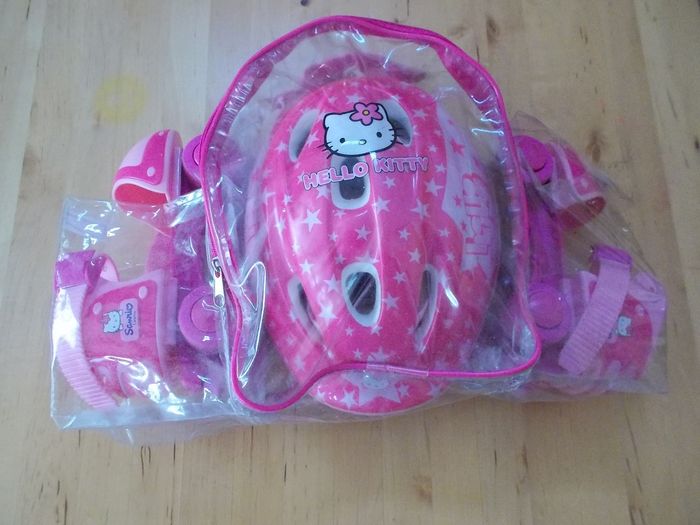 Set Rollers complet "Hello Kitty" By Sanrio pour fille 3-7 ans, couleur rose, casque, une paire de rollers réglables et protections, quasi neuf.