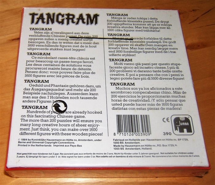 Jeu d'exercice cérébral "Tangram" en bois, quasi neuf.