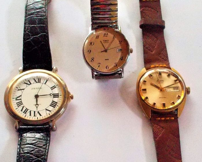 Montres Mécaniques Collecteur: "JYB Tonic", boîtier de 4,2 mm, aiguilles, trotteuse et chiffres couleur noir intérieur blanc, et bracelet cuir, "Timex" boîtier argent, à intérieur blanc ,aiguilles trotteuse noir avec dateur, bracelet métal flexible couleur argent, "Bessa", boitier rond de 33 mm à intérieur cuivré et bracelet en cuir marron, toutes en parfait état de fonctionnement, au choix 45 euros chacune, merci de confirmer votre choix à la commande.