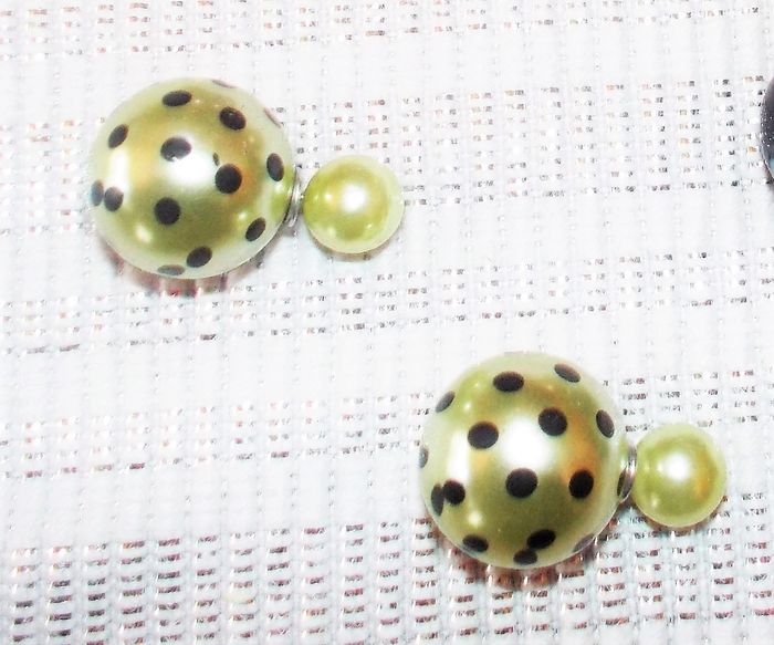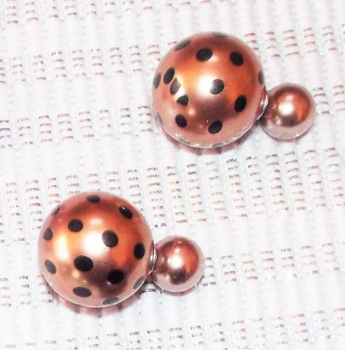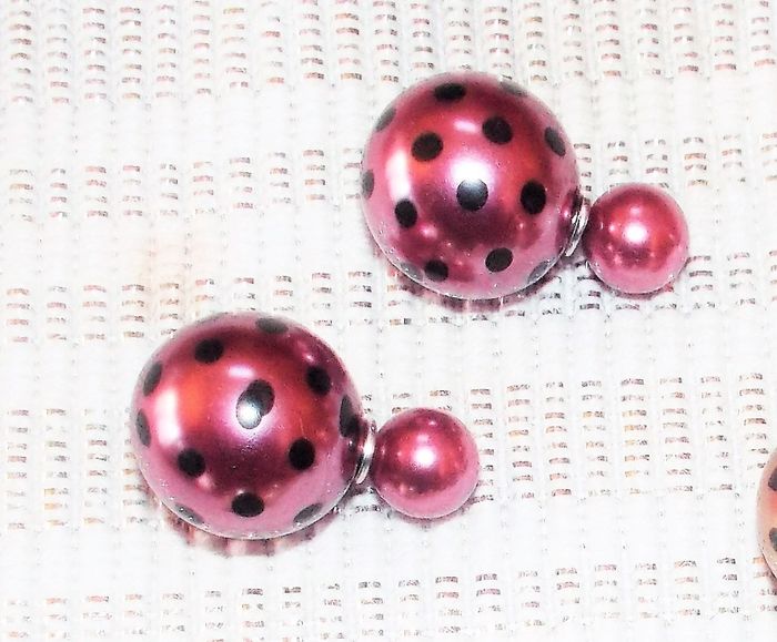 Boucles d'oreille double sphère Marleen's "Coccinelle" couleur noir, vert, prune, rose satin, 5 euros la paire, merci de confirmer votre choix à la commande.