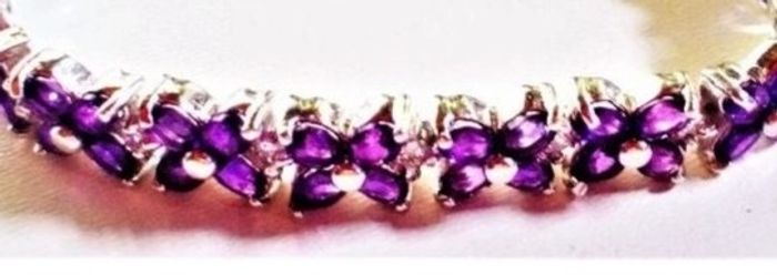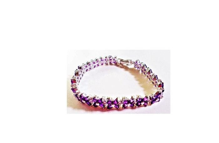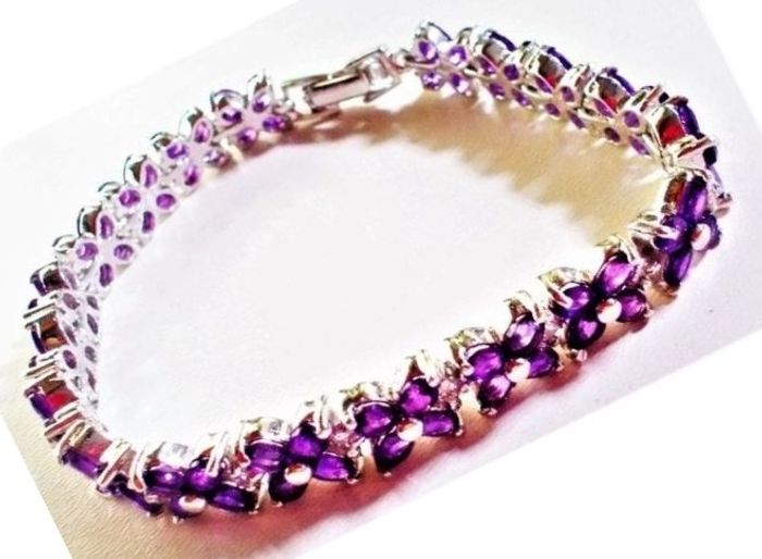 Bracelet en argent véritable poinçonne "Aprille" en argent et améthystes, longueur 22 cm, neuf.
