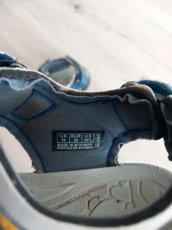 Nu pieds Geox pointure 28 A scratchs en très bon état Bleus et jaunes