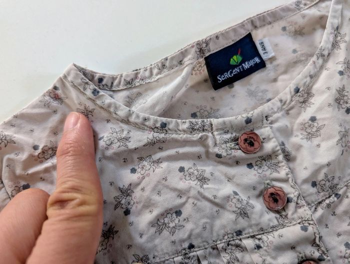 Je vends cette jolie blouse chemisier à fleurs de la marque Sergent Major pour fille de 3 ans. - Type de produit : Blouse chemisier - Marque : Sergent Major - Taille : 3 ans - Couleur : Multicolore - Caractéristiques : Motif floral, Boutons décoratifs Petit point rouge très discret de feutre enfant sur la dernière photo d'où petit prix #yipin_fille_3ans