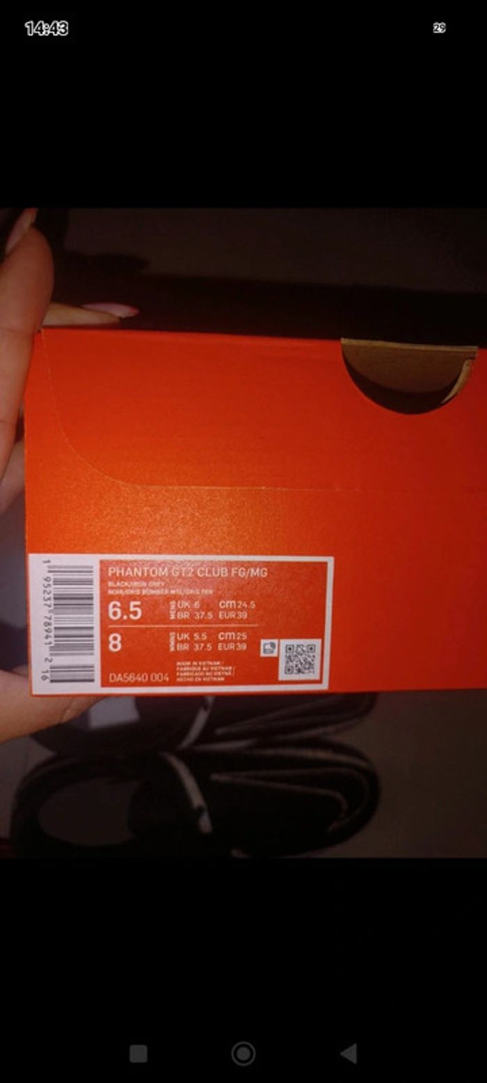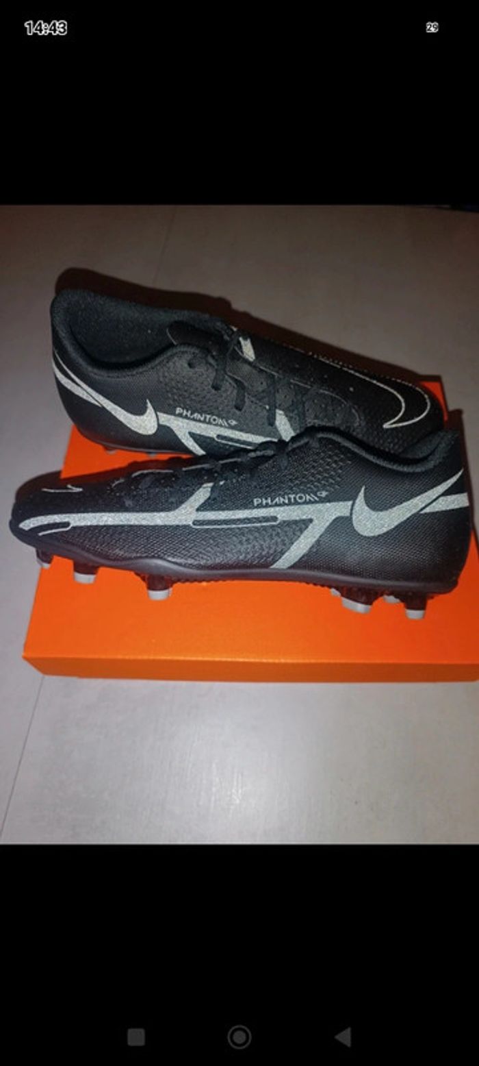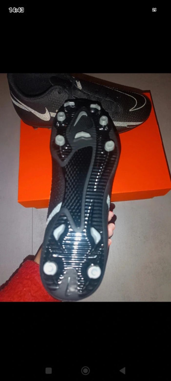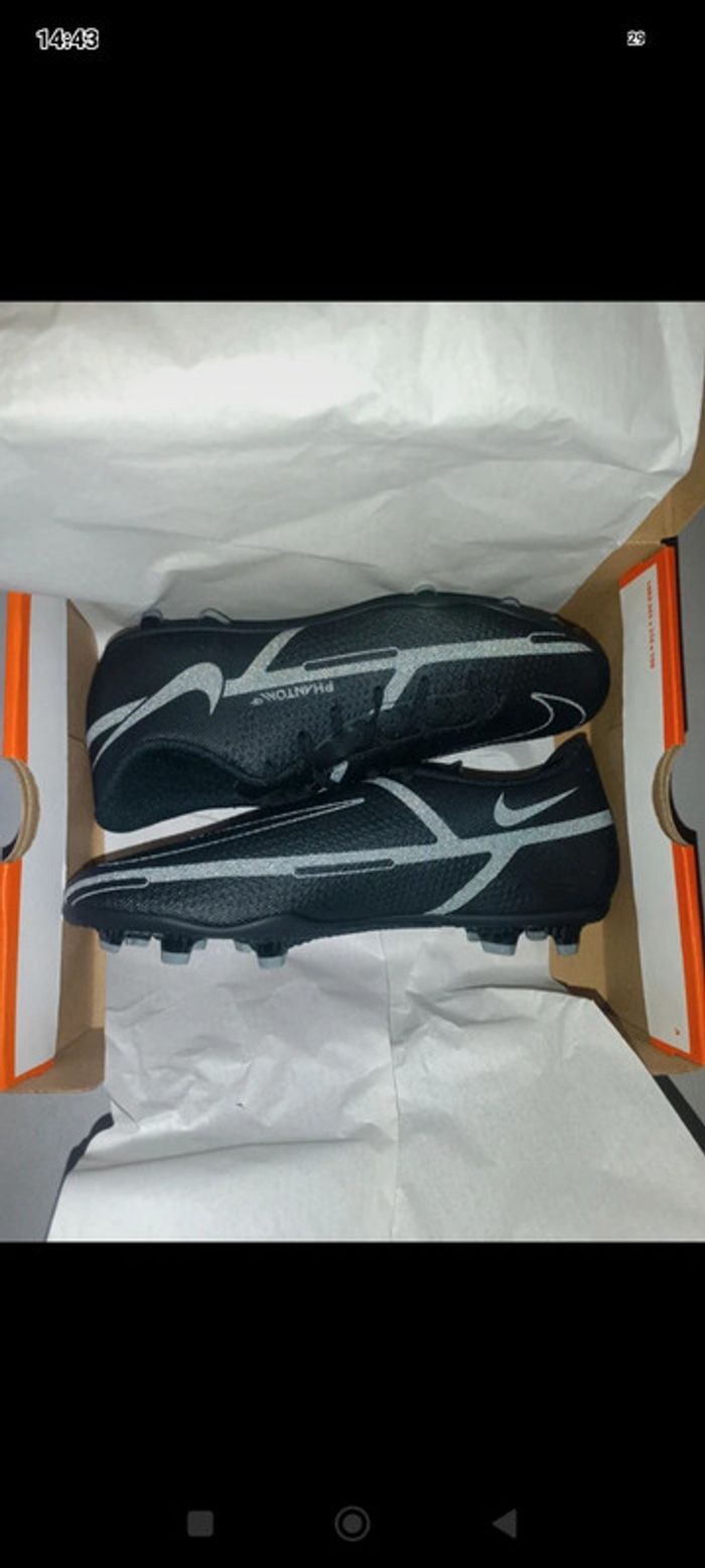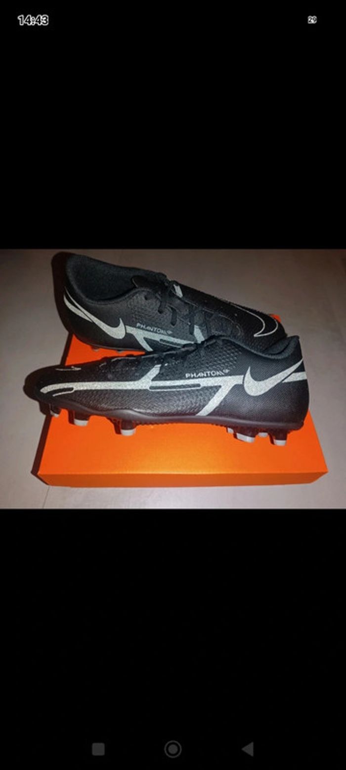 Crampons Nike phantom gt2 club Fg/Mg en cuir Taille 39 Couleur noir et gris Neuf dans l'emballage d'origine Authentique ✅ Envoi rapide et soigné 📦