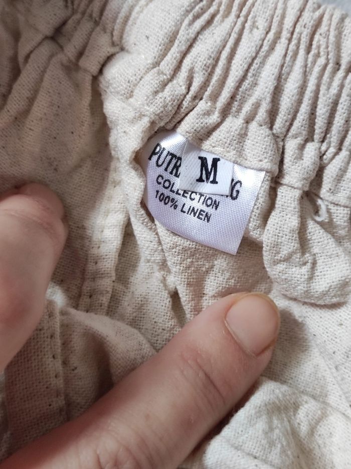 petit short court avec poches de couleur beige écru. Marque putra barong en taille M. 100 % lin. En parfait état