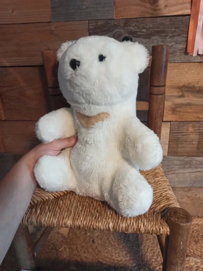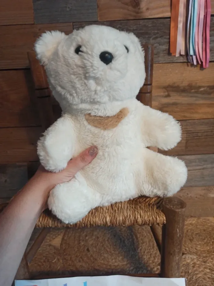 Peluche ours blanc coeur Nounours vintage tbe - photo numéro 1
