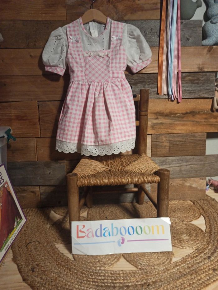 Robe vintage Rose et blanche Biss Goss Paris Vintage Tbe N'hésitez pas à faire un loup pour économiser sur les frais de port Pour voir les autres articles de la même catégorie : #badaboooom_18moisfilles #badaboooom_modevintagefilles