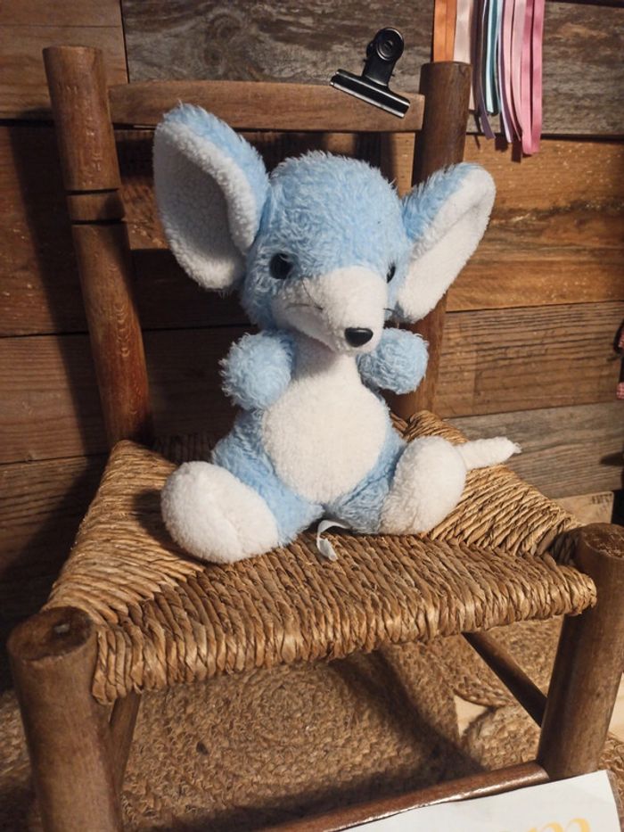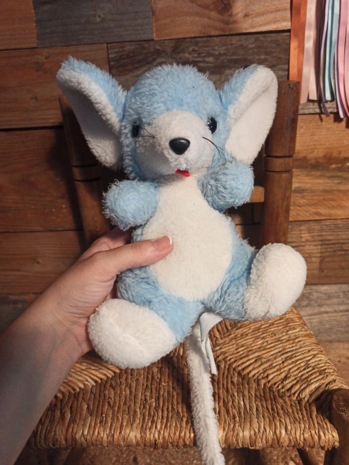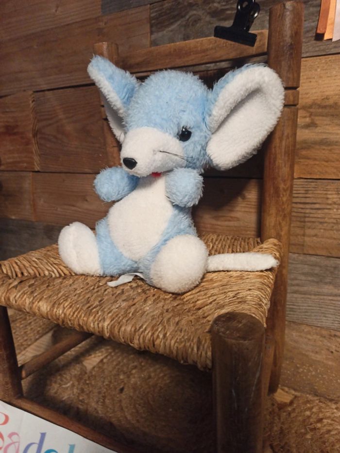 Peluche souris Bleue et blanche Nounours Vintage BE N'hésitez pas à faire un lot pour économiser sur les frais de port Pouvoir voir les autres articles de la même catégorie : #badaboooom_peluches #badaboooom_nounours #badaboooom_vintage