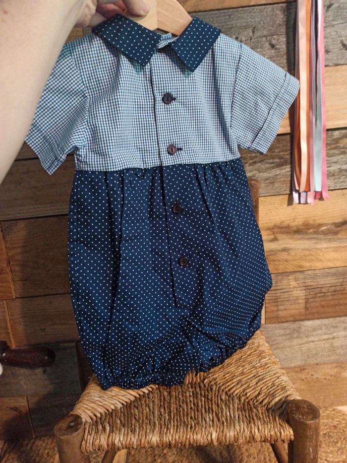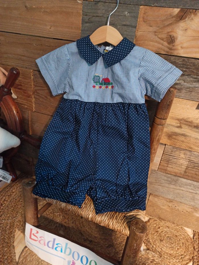 Grenouillère vintage bleu B.F.D création 6 mois - photo numéro 1