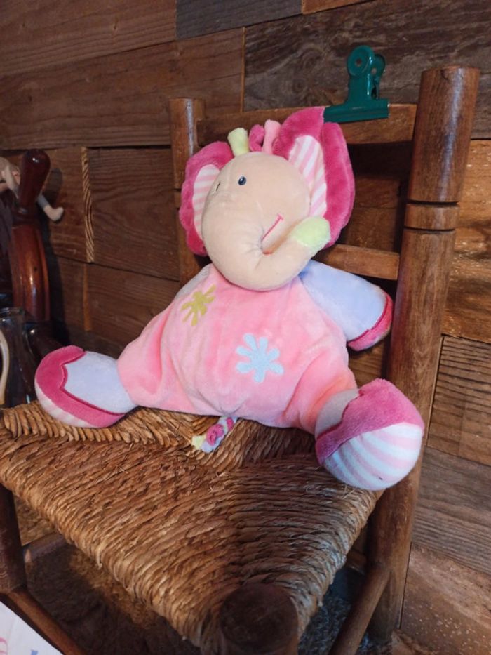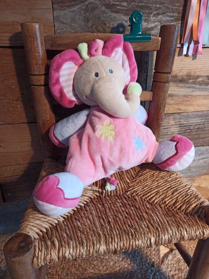 Peluche éléphant Nattou rose tbe - photo numéro 2