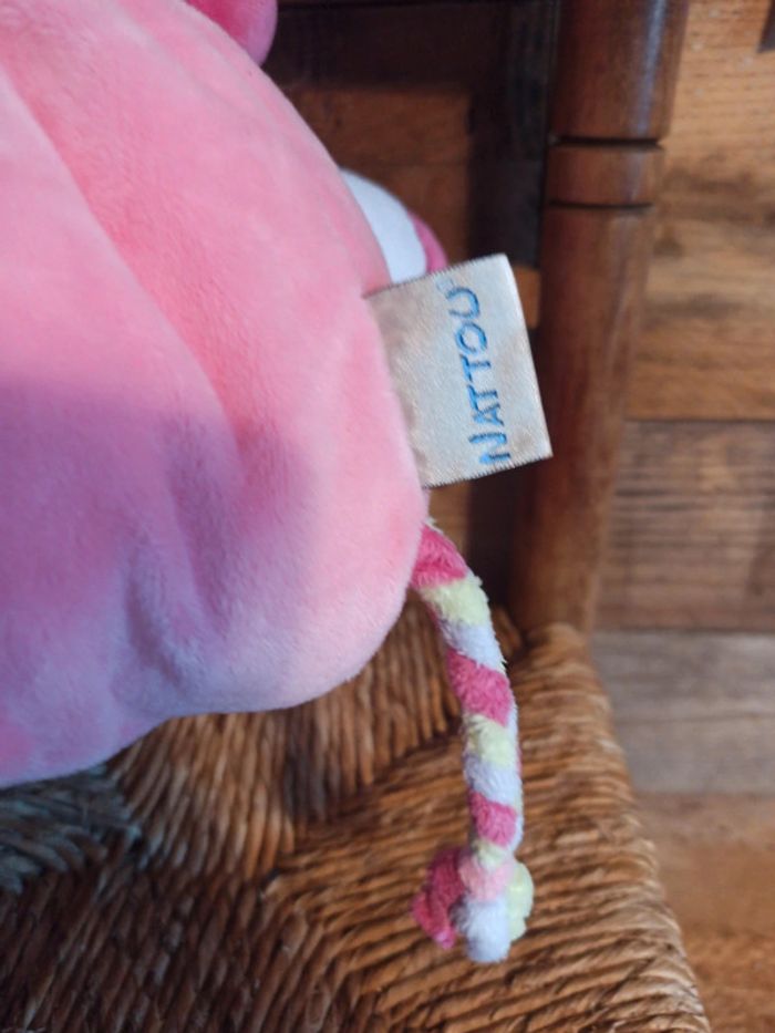 Peluche éléphant Nattou rose tbe - photo numéro 6
