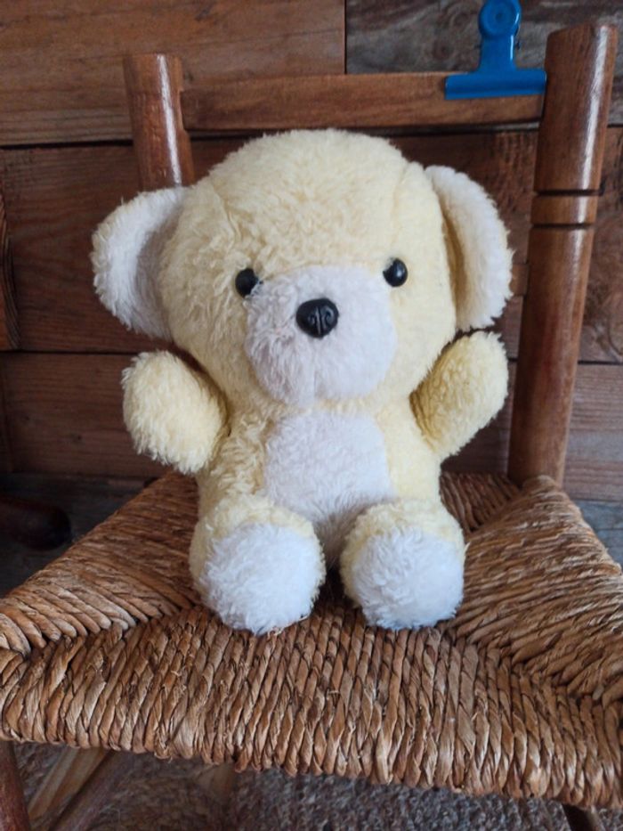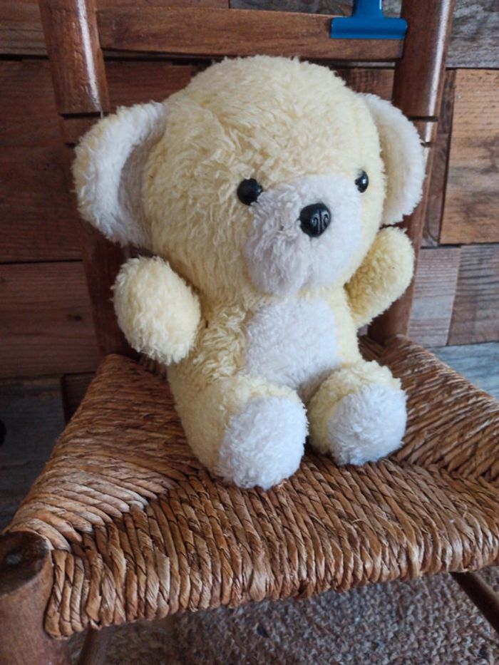 Peluche ours  jaune hochet  vintage Ajena BE - photo numéro 1