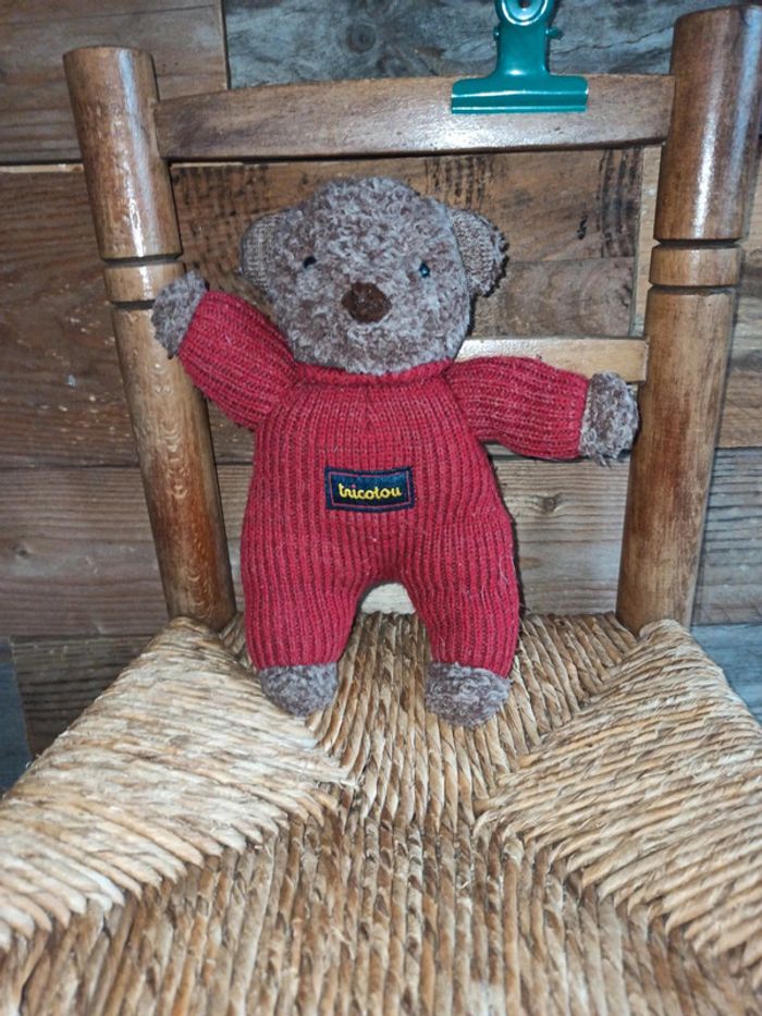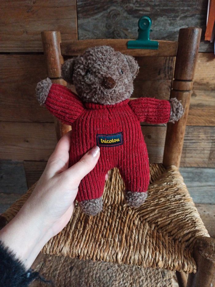 Peluche petit ours tricotou rouge jemini vintage tbe - photo numéro 1