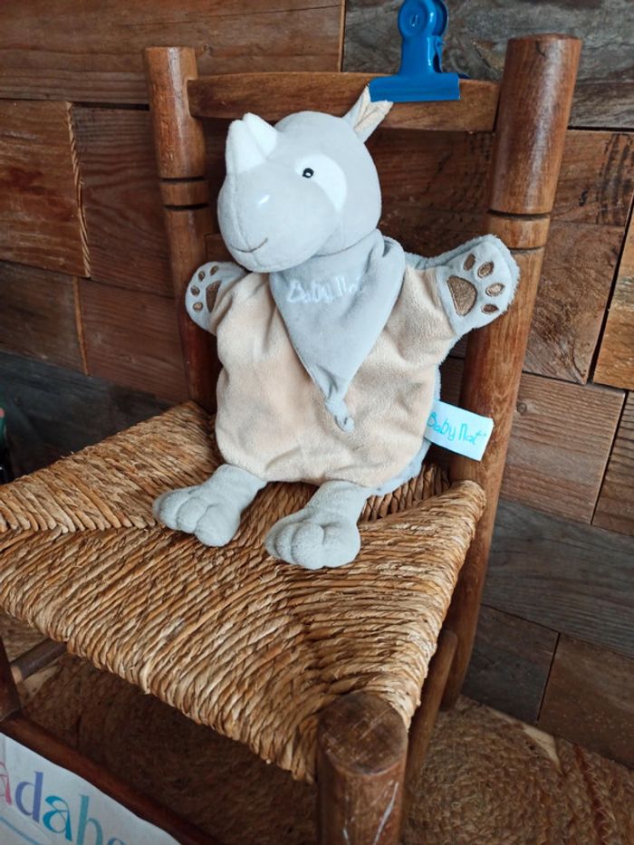 Doudou rhinocéros Baby nat Marionnette Tbe N'hésitez pas à faire un lot pour economiser sur les frais de port Pour voir les autres articles de la même categorie : #badaboooom_doudous #badaboooom_babynat #badaboooom_marionnettes