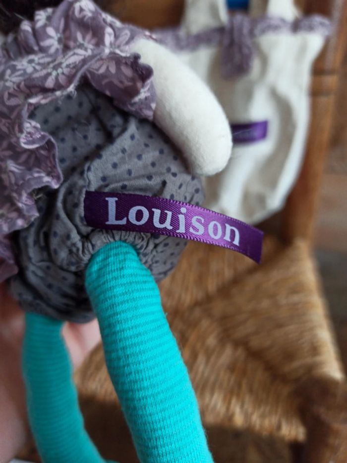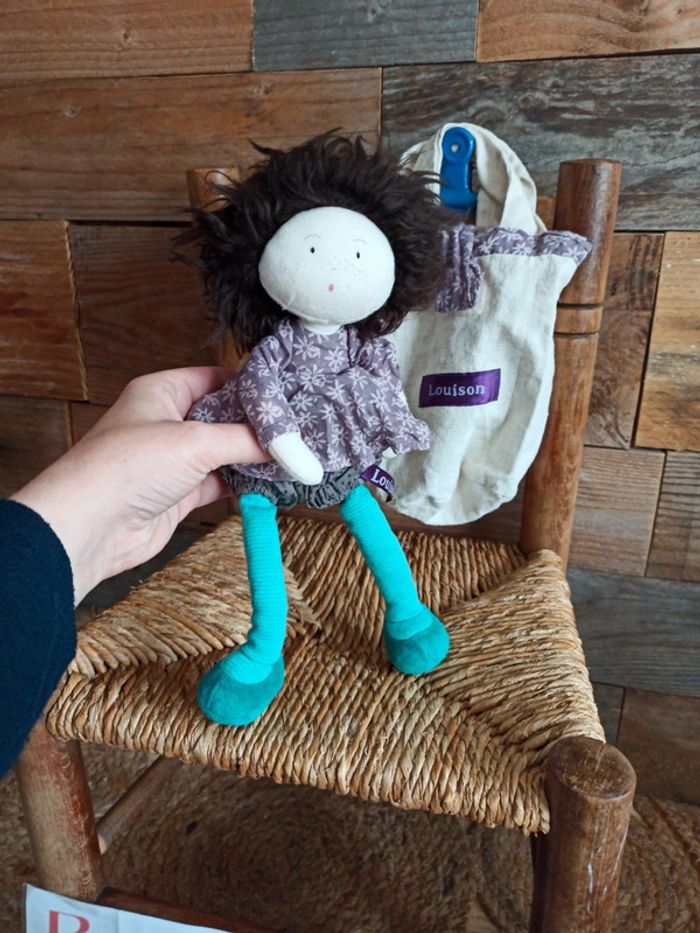 Poupée Louison et son petit sac Tbe Moulin roty 25 cm N'hésitez pas à faire un lot pour economiser sur les frais de port Pour voir les autres articles de la même categorie : #badaboooom_peluches #badaboooom_moulinroty