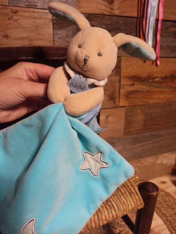 Doudou lapin baby Nat Tbe Lapin bleu étoile lune N'hésitez pas à faire un lot pour economiser sur les frais de port Pour voir les autres articles de la même categorie : #badaboooom_doudous #badaboooom_babynat