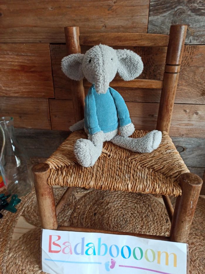 peluche éléphant pull bleu tbe - photo numéro 1