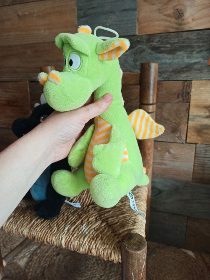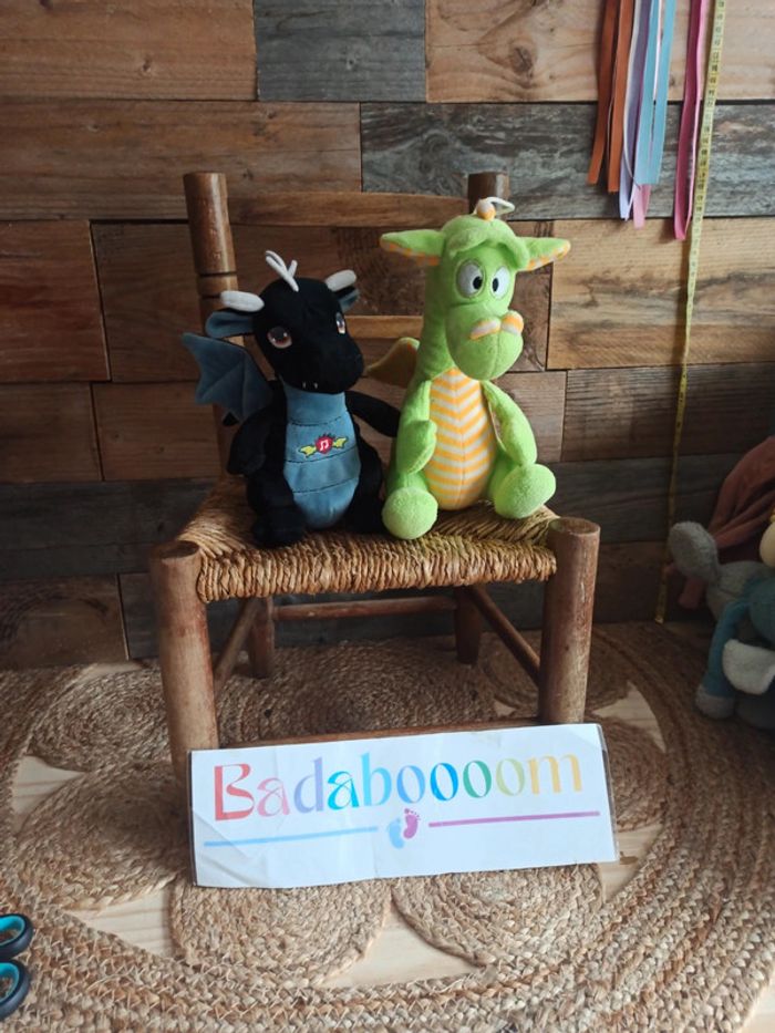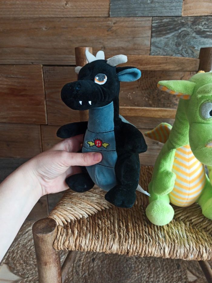 Lot de 2 peluches dragons 1 noir qui fait une petite musique 1 vert Pour voir les autres articles de la même categorie : #badaboooom_peluches
