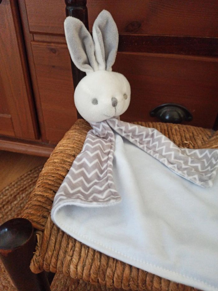 Doudou lapin blanc gris tbe - photo numéro 3